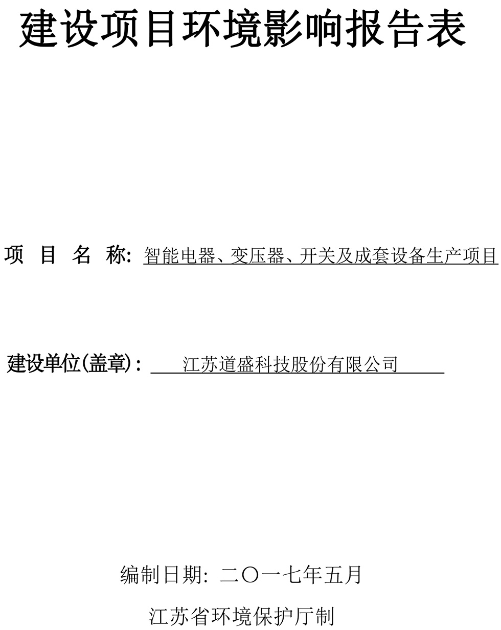 江蘇道盛科技股份有限公司 智能電器、變壓器、開關(guān)及成套設(shè)備生產(chǎn)項(xiàng)目報(bào)告表(公示版)